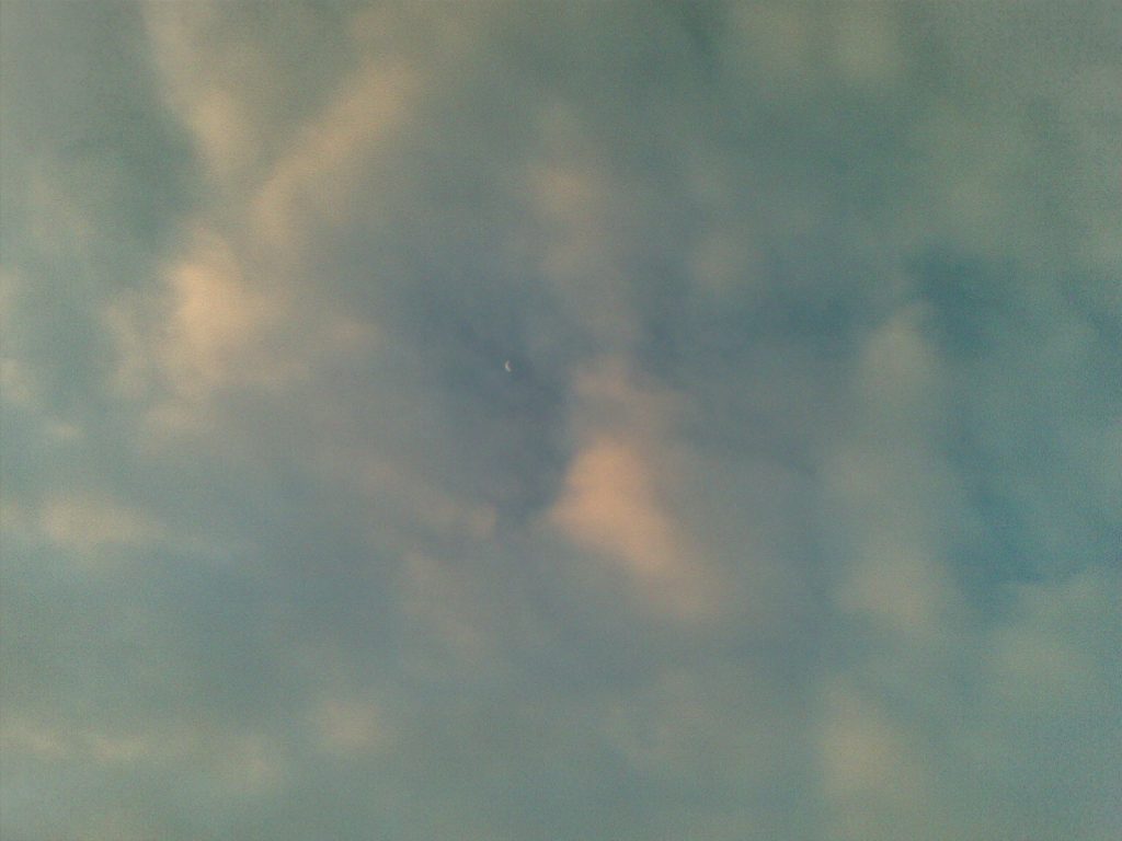 Danes zjutraj pa je bilo nebo res, kot bi ga nekdo naslikal… svetlo morda poldaga in beli puhasti oblački, med katerimi je kukala sramežljiva lunica…